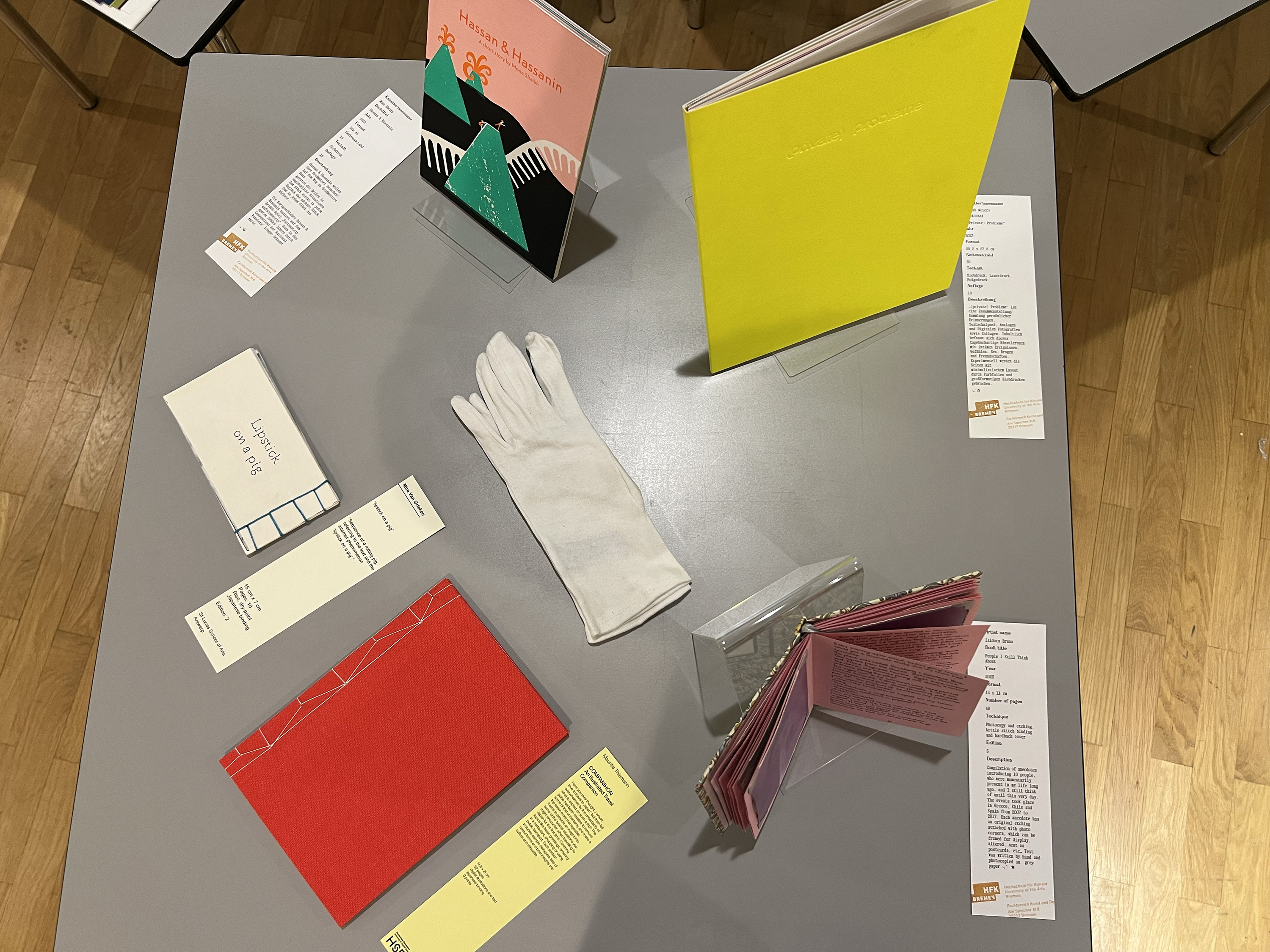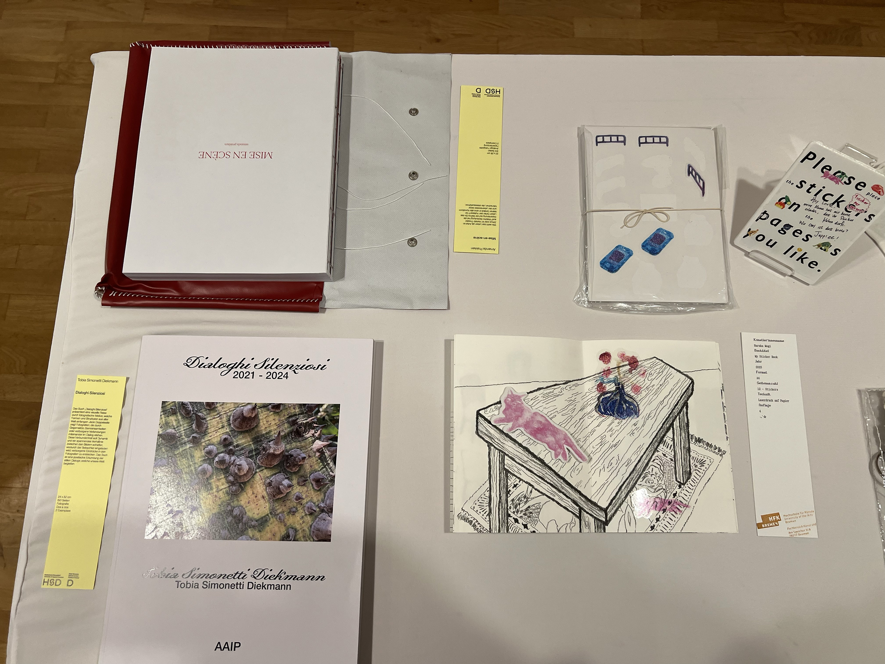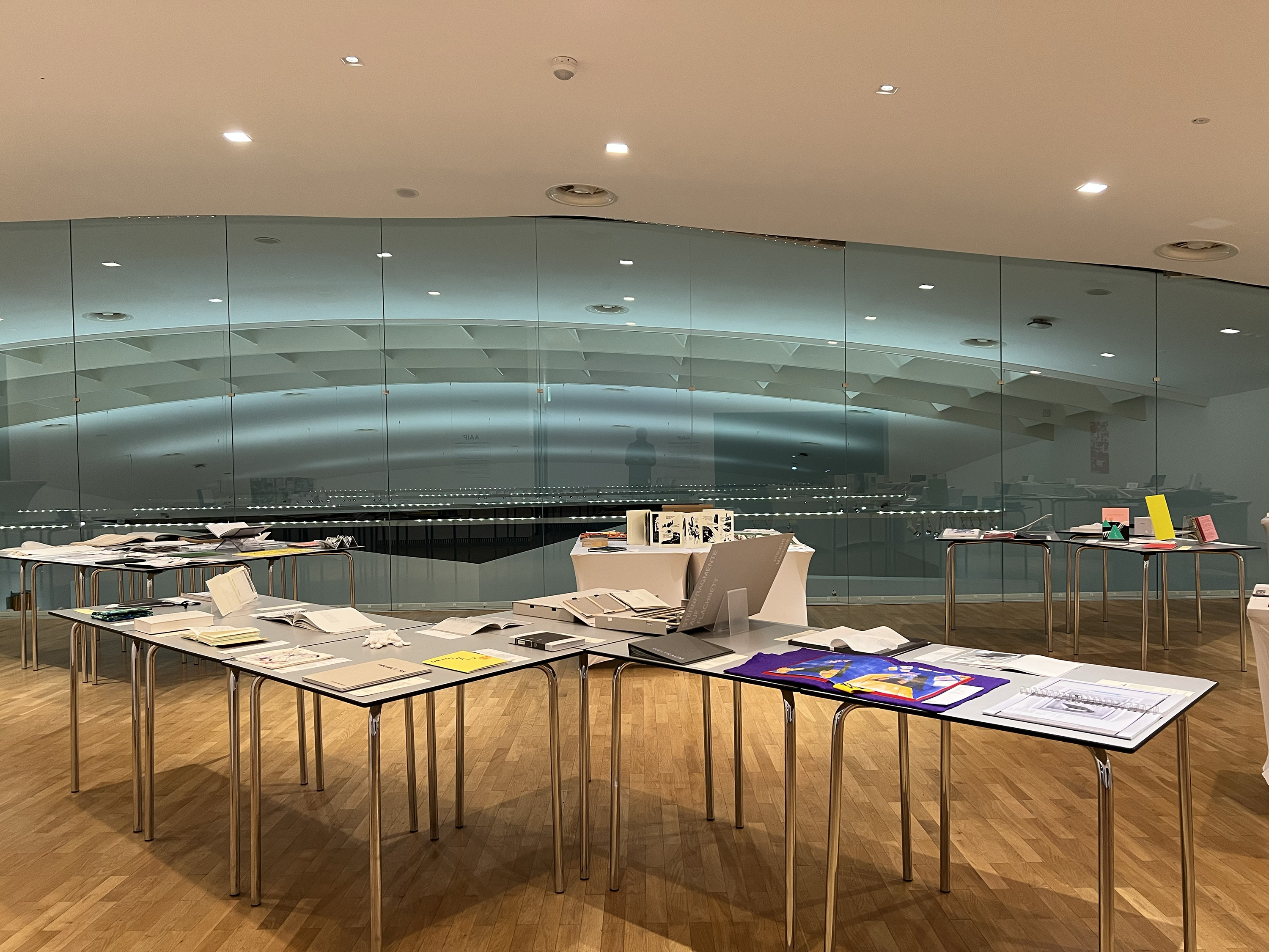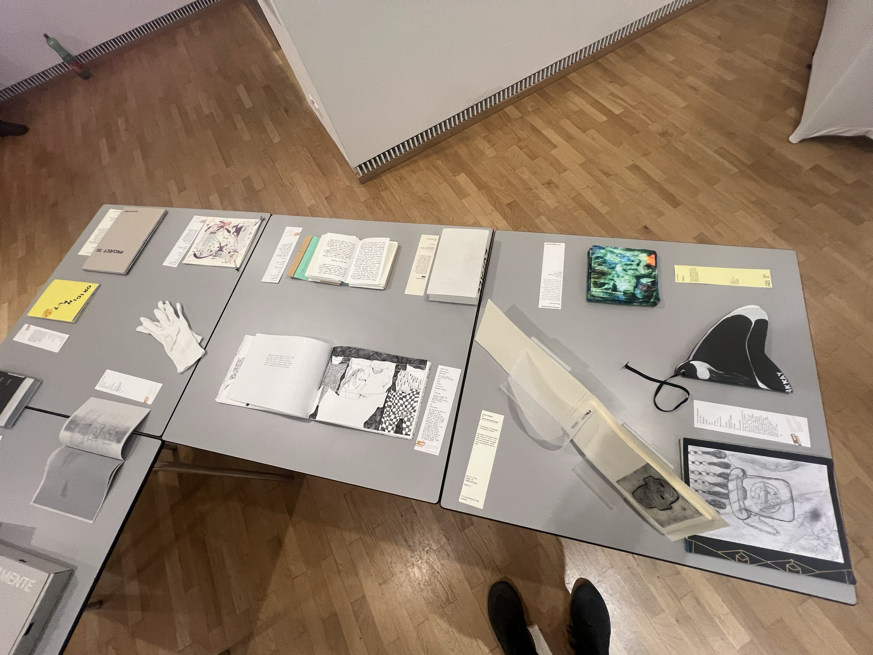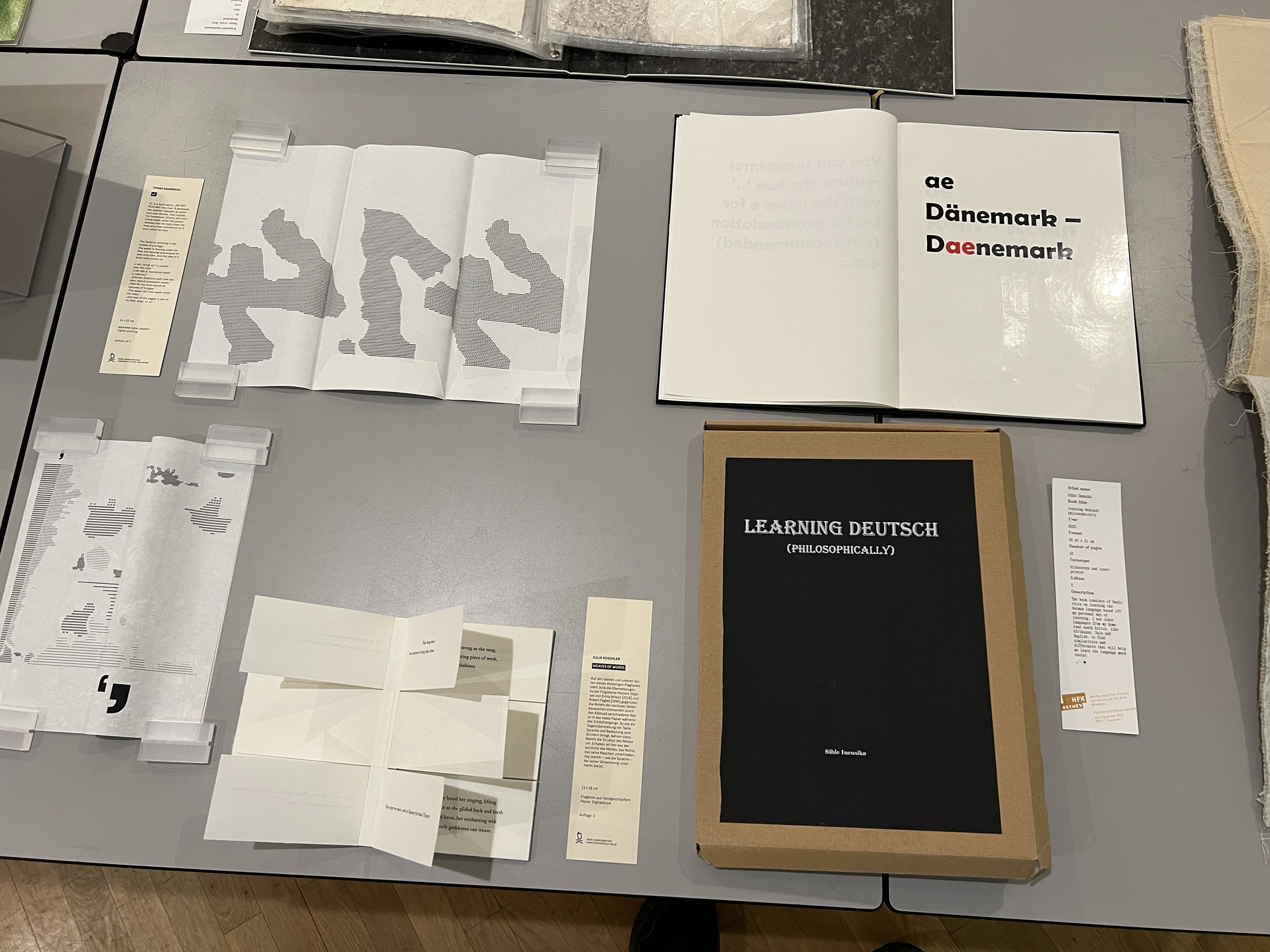 Es wurden 120 Künstlerbücher junger Künstler*innen der Abteilung; der Hochschule für Künste Bremen; der Peter Behrens School of Arts; der Hochschule Düsseldorf; der Burg Giebichenstein Kunsthochschule Halle und der Sint Lucas School of Arts Antwerpen präsentiert.