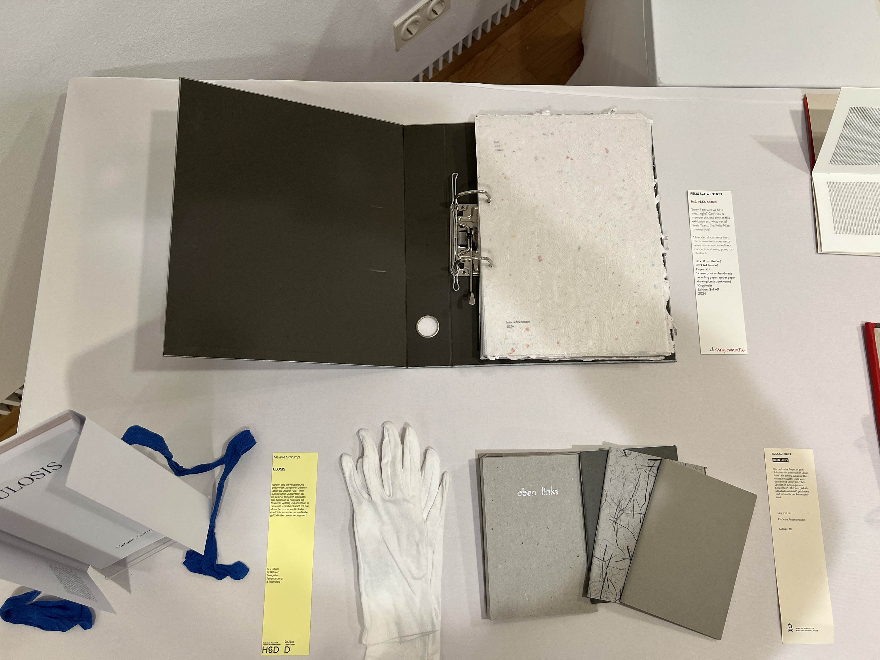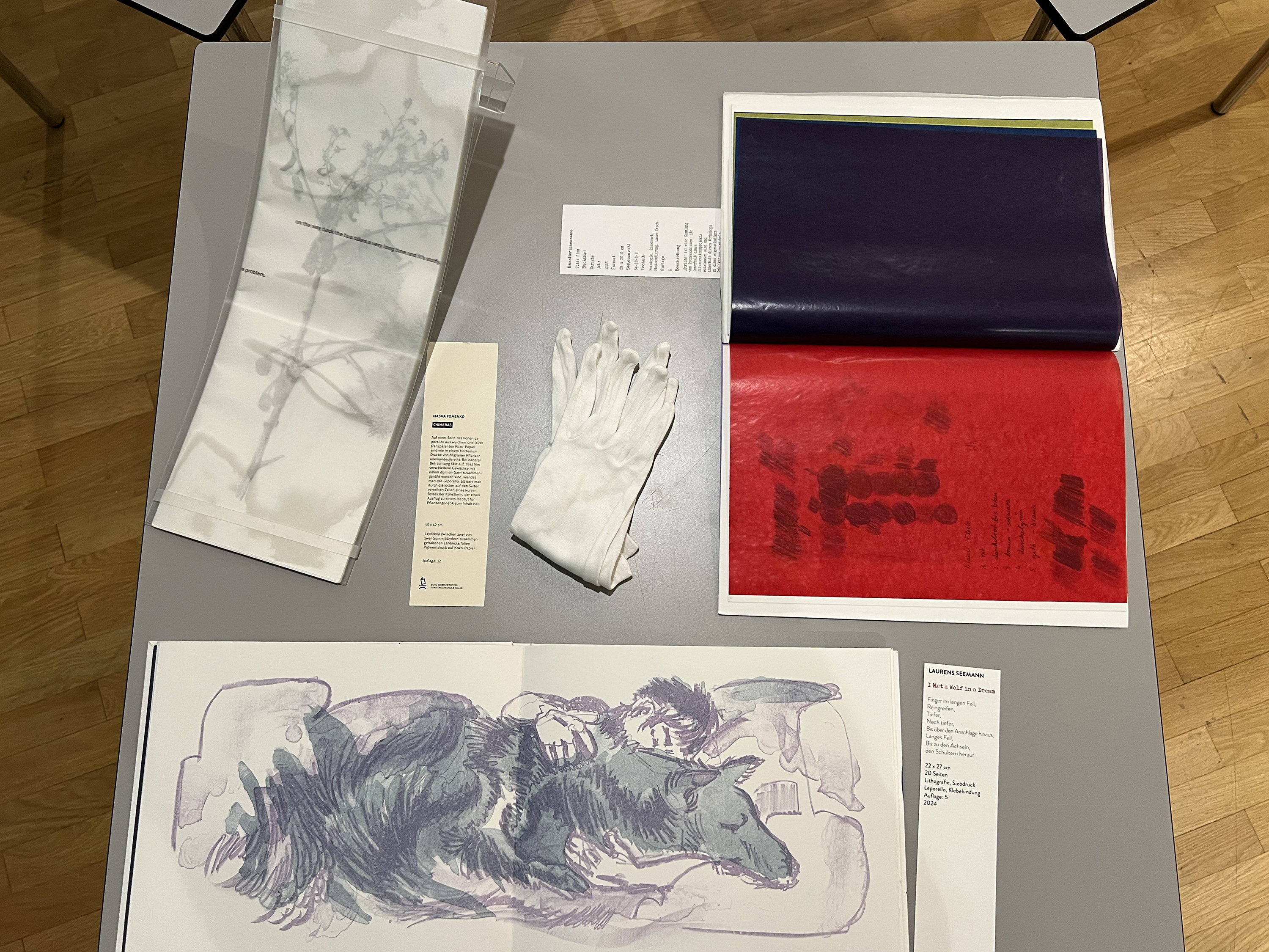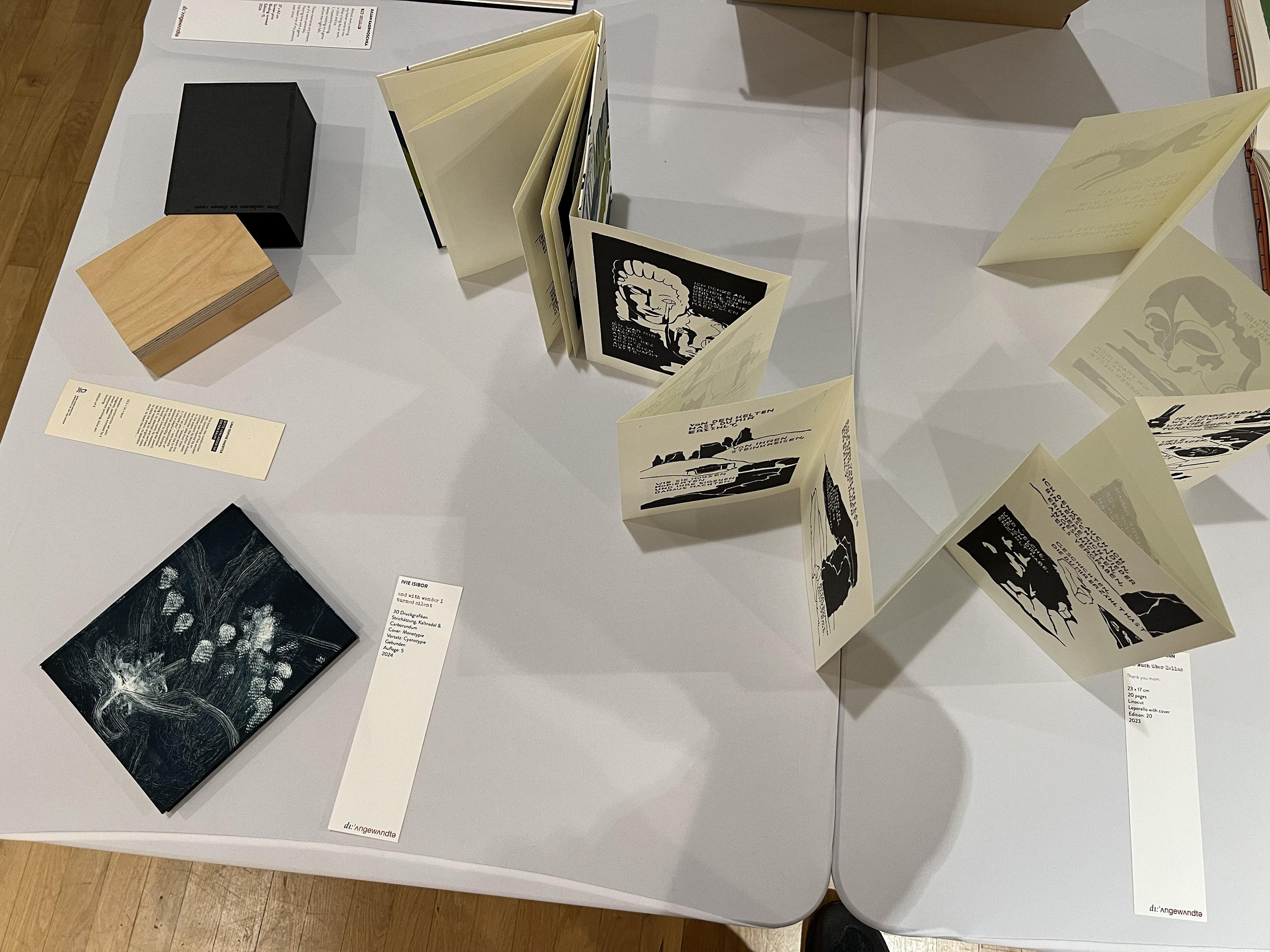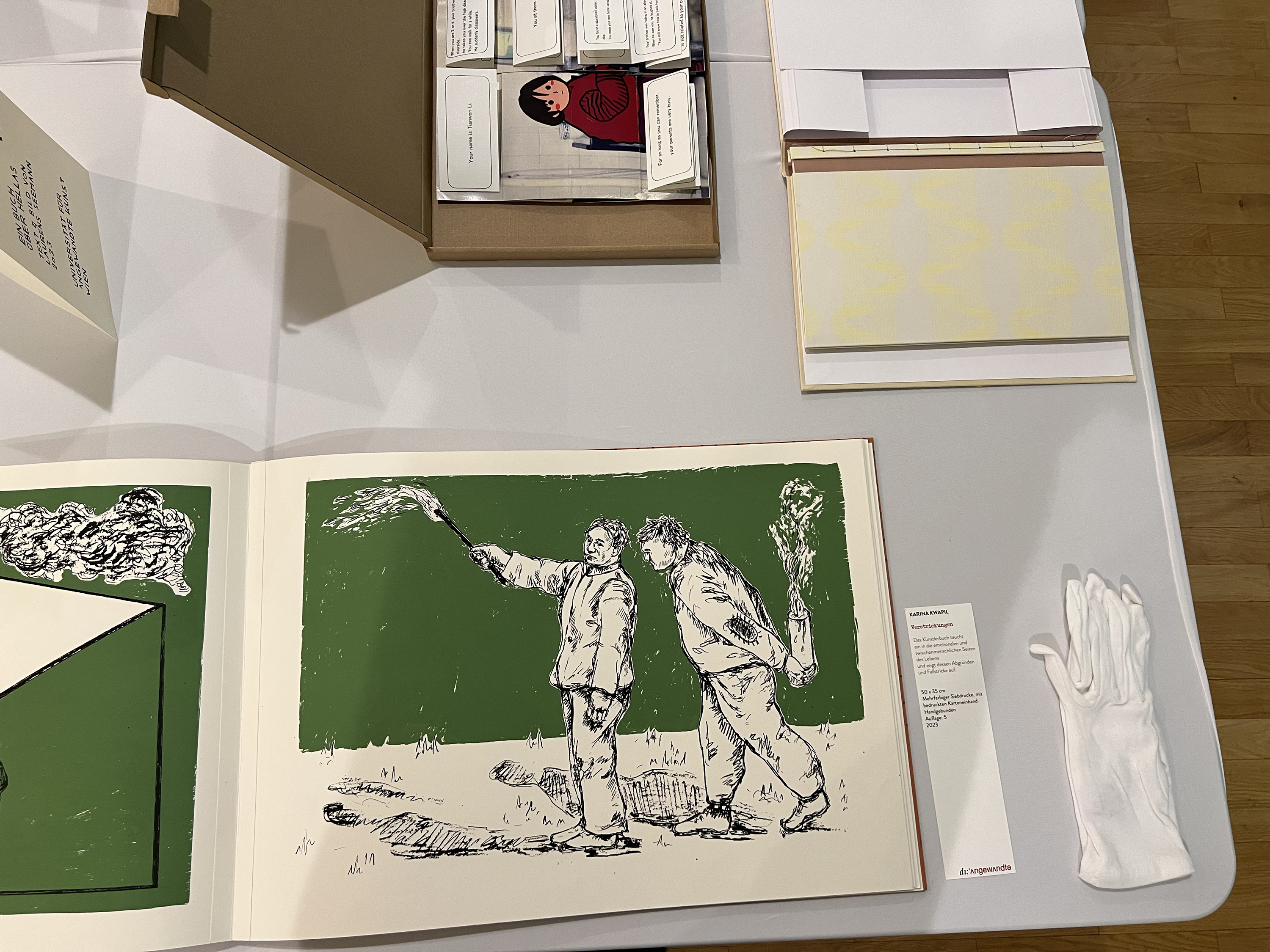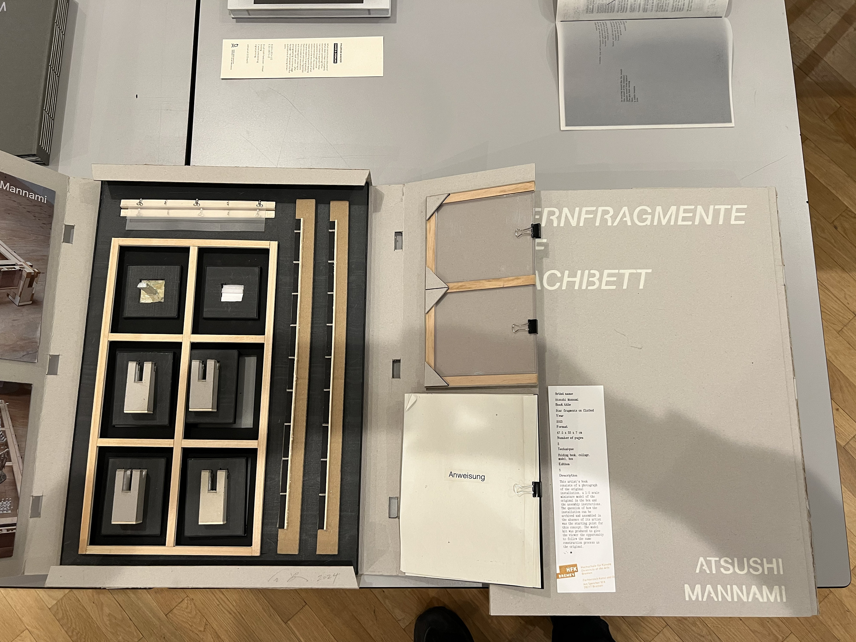 Es wurden 120 Künstlerbücher junger Künstler*innen der Abteilung; der Hochschule für Künste Bremen; der Peter Behrens School of Arts; der Hochschule Düsseldorf; der Burg Giebichenstein Kunsthochschule Halle und der Sint Lucas School of Arts Antwerpen präsentiert.