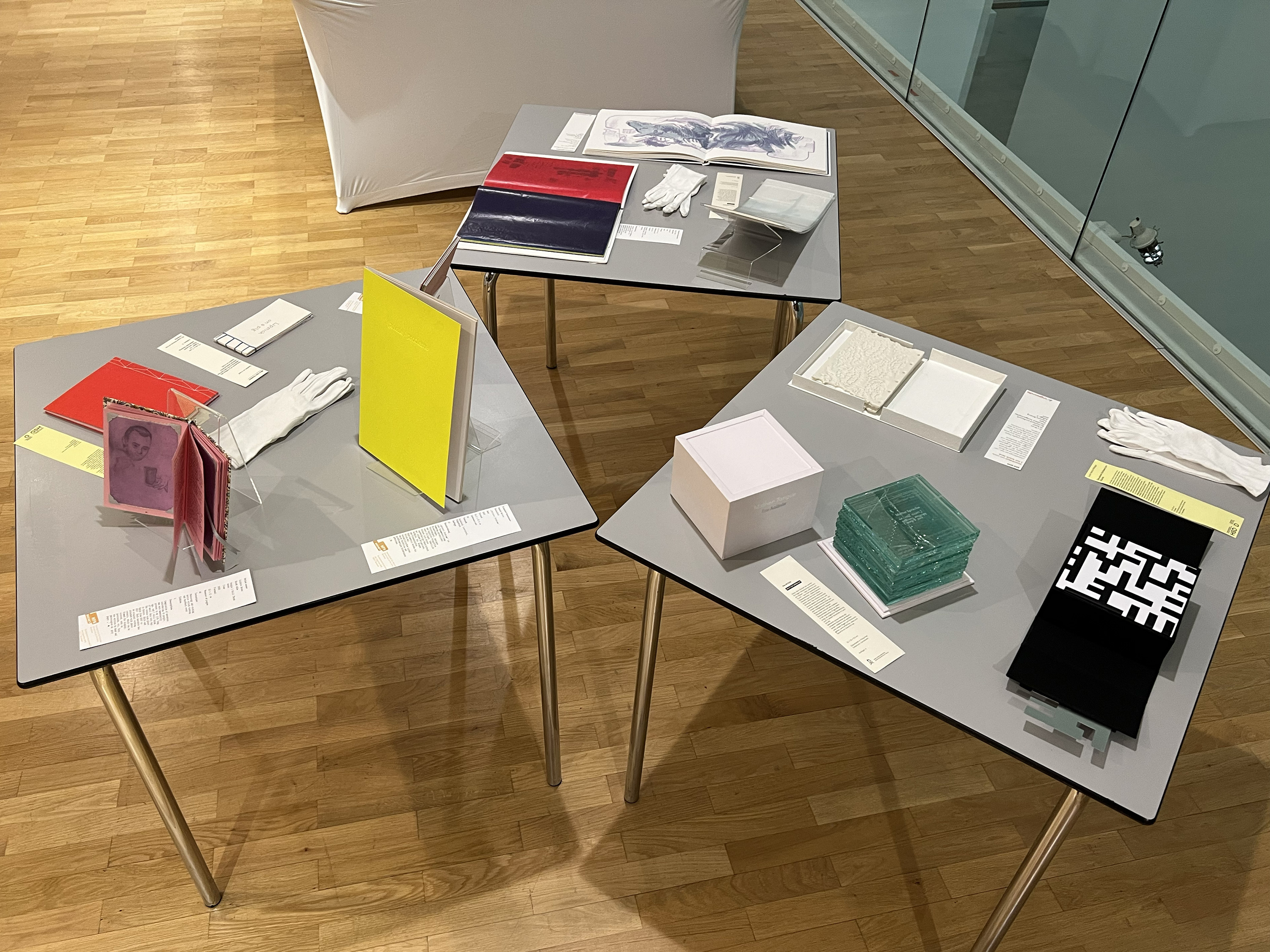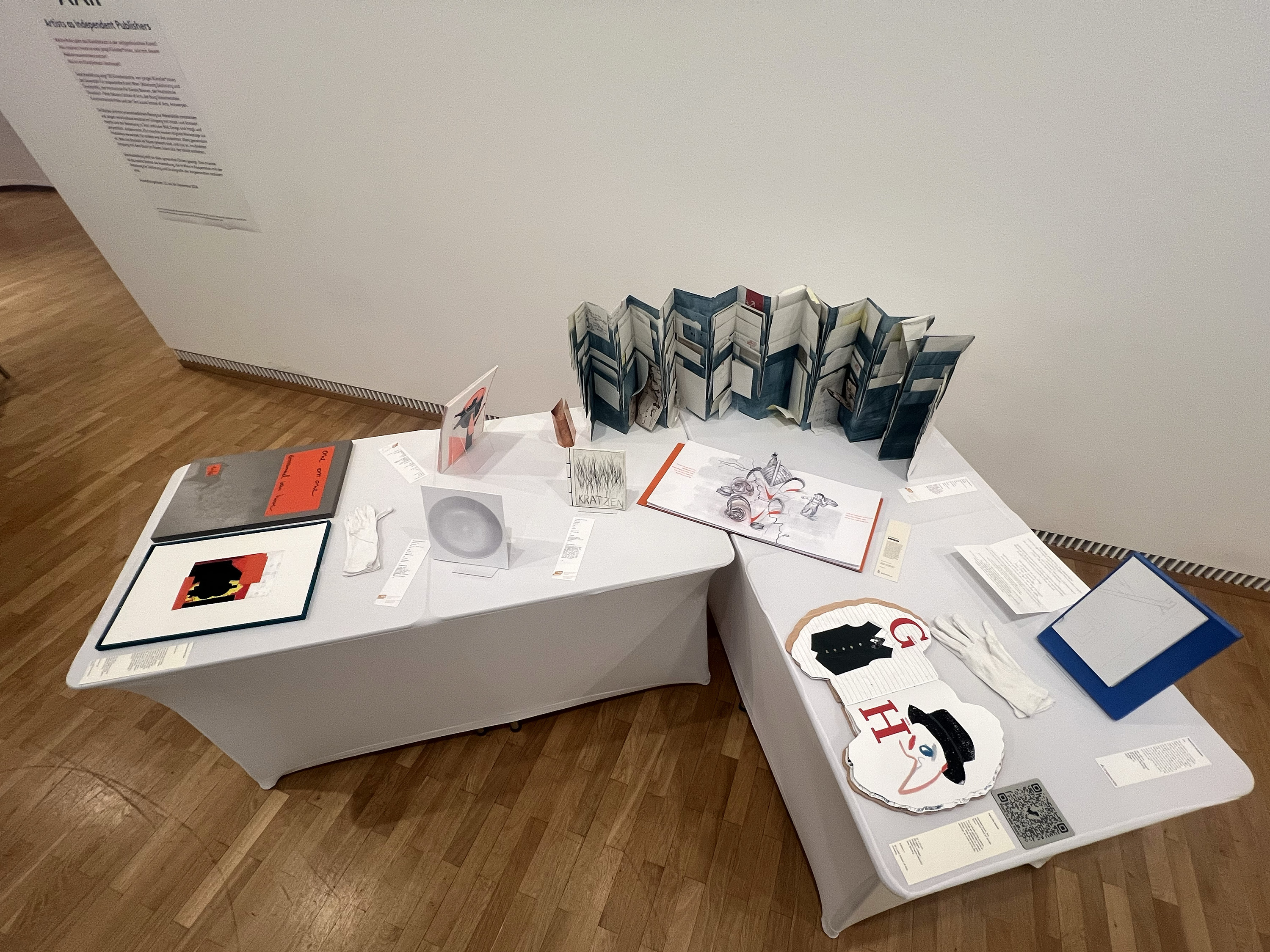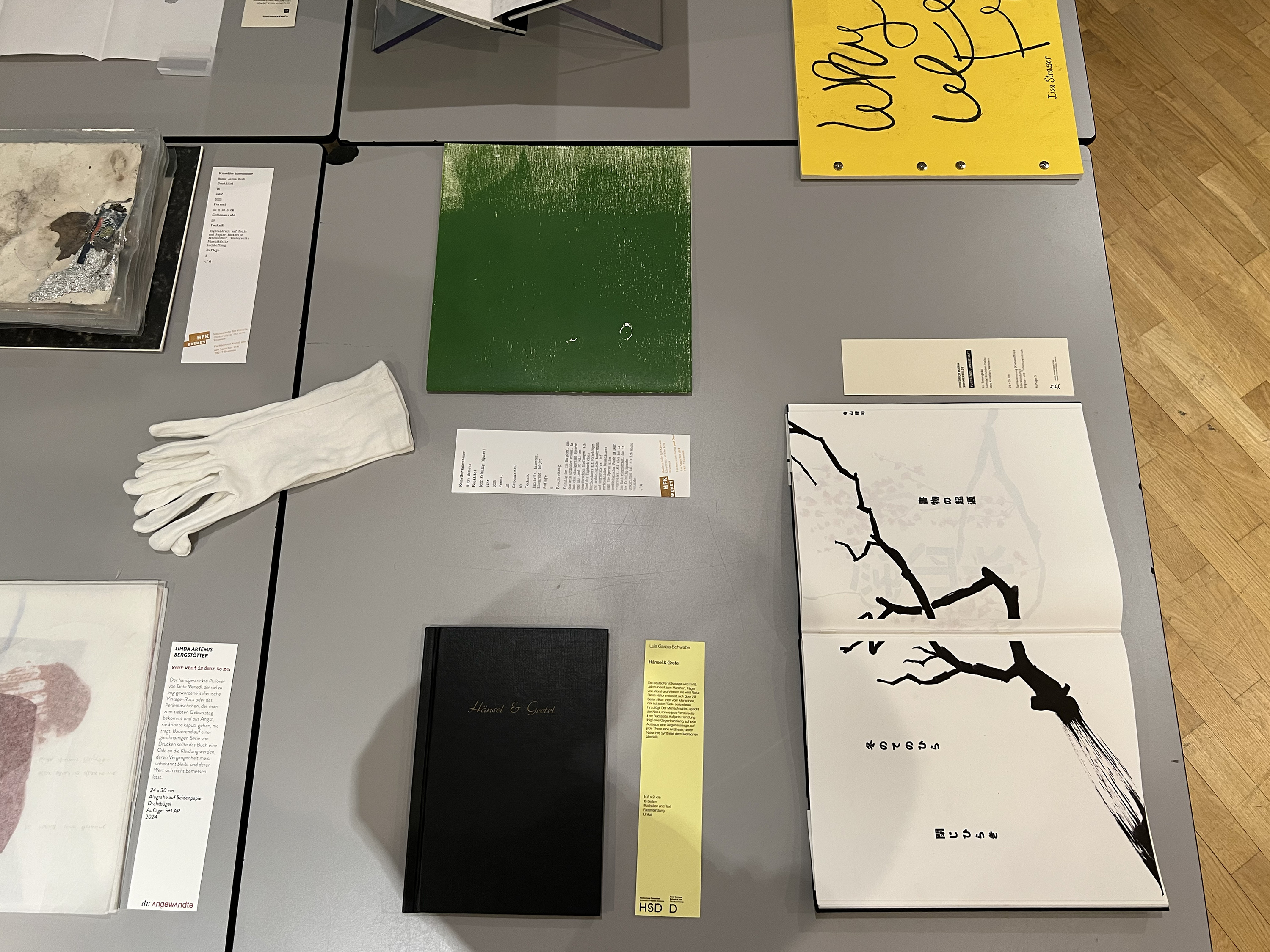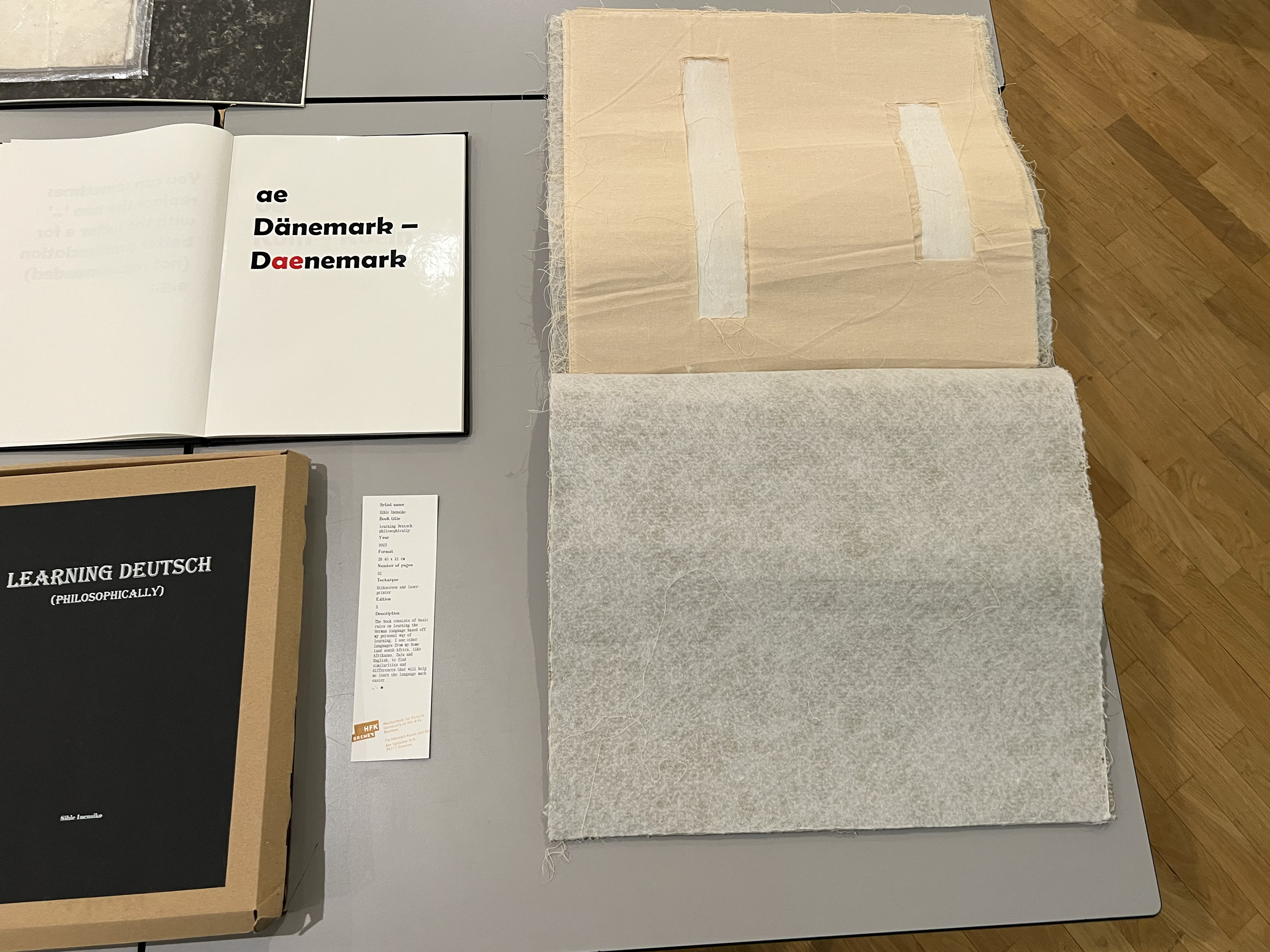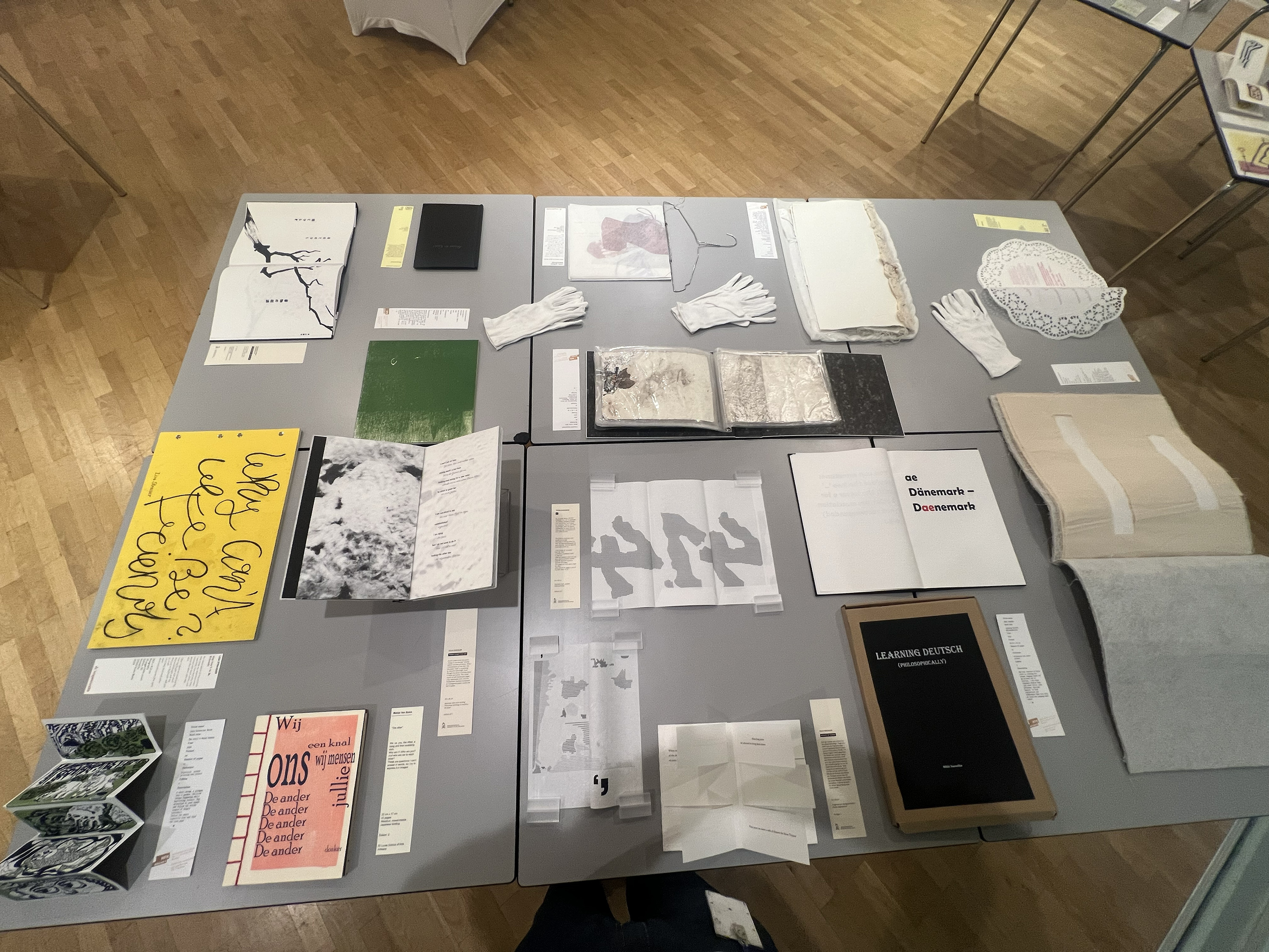 Es wurden 120 Künstlerbücher junger Künstler*innen der Abteilung; der Hochschule für Künste Bremen; der Peter Behrens School of Arts; der Hochschule Düsseldorf; der Burg Giebichenstein Kunsthochschule Halle und der Sint Lucas School of Arts Antwerpen präsentiert.