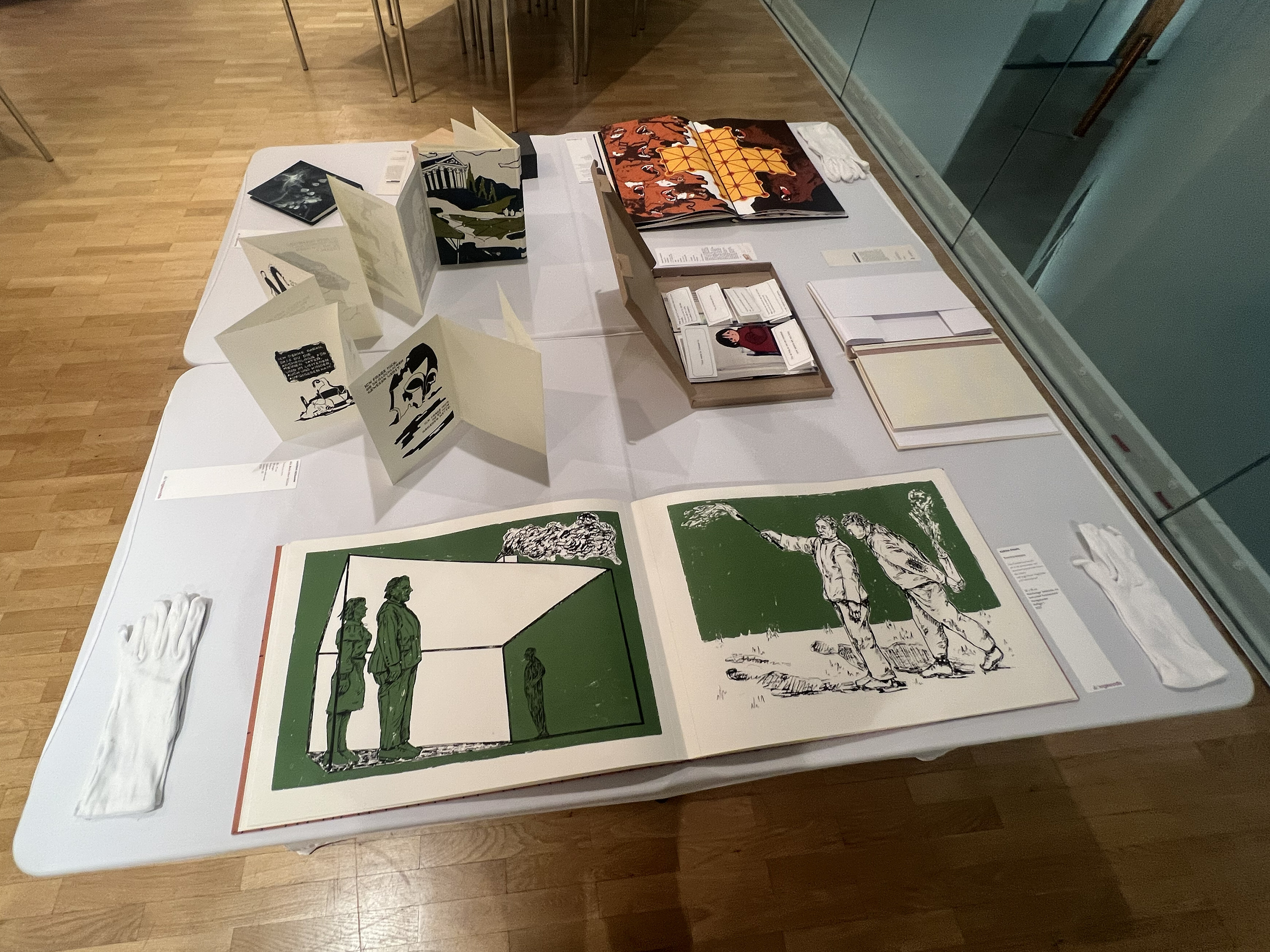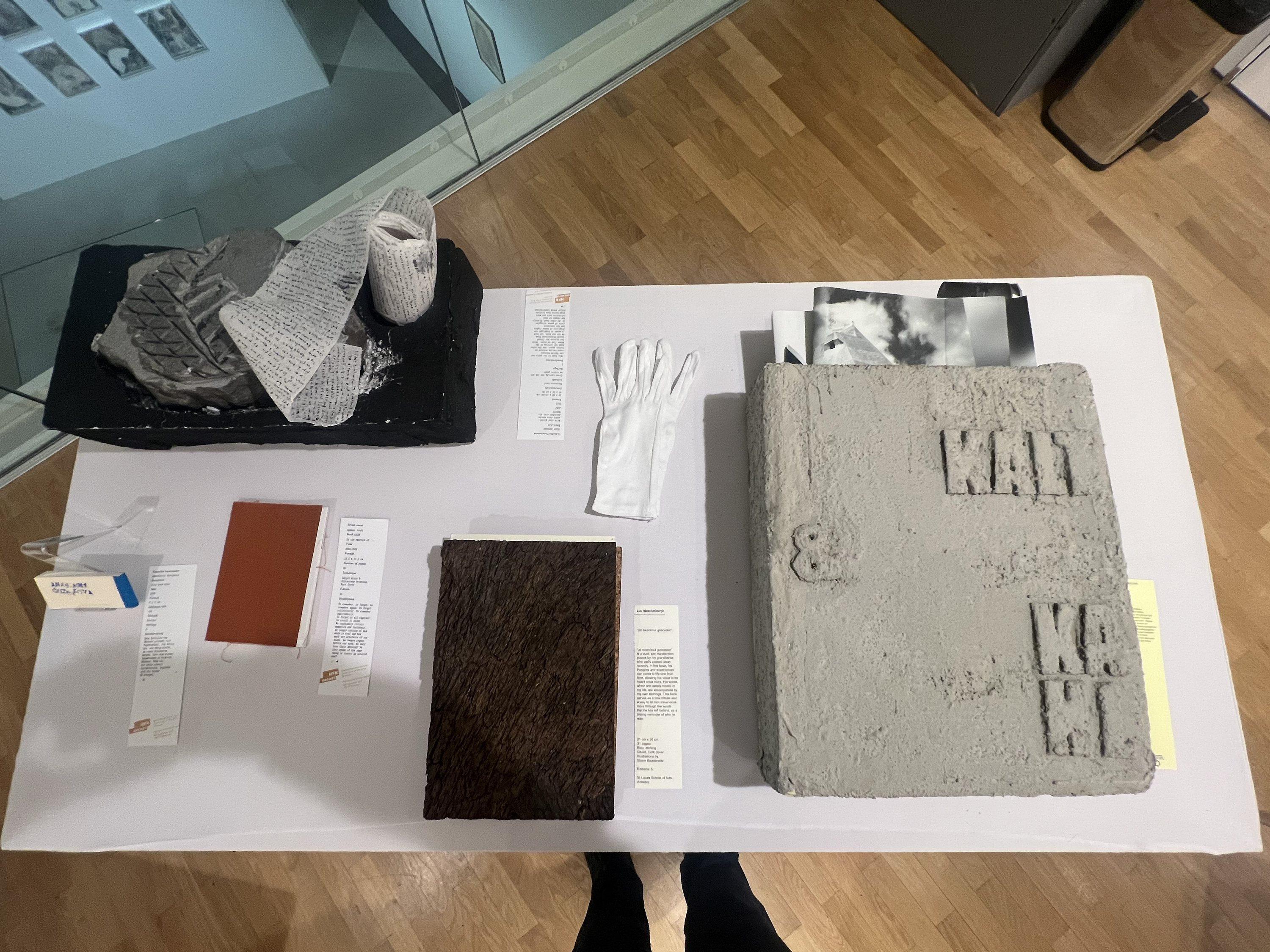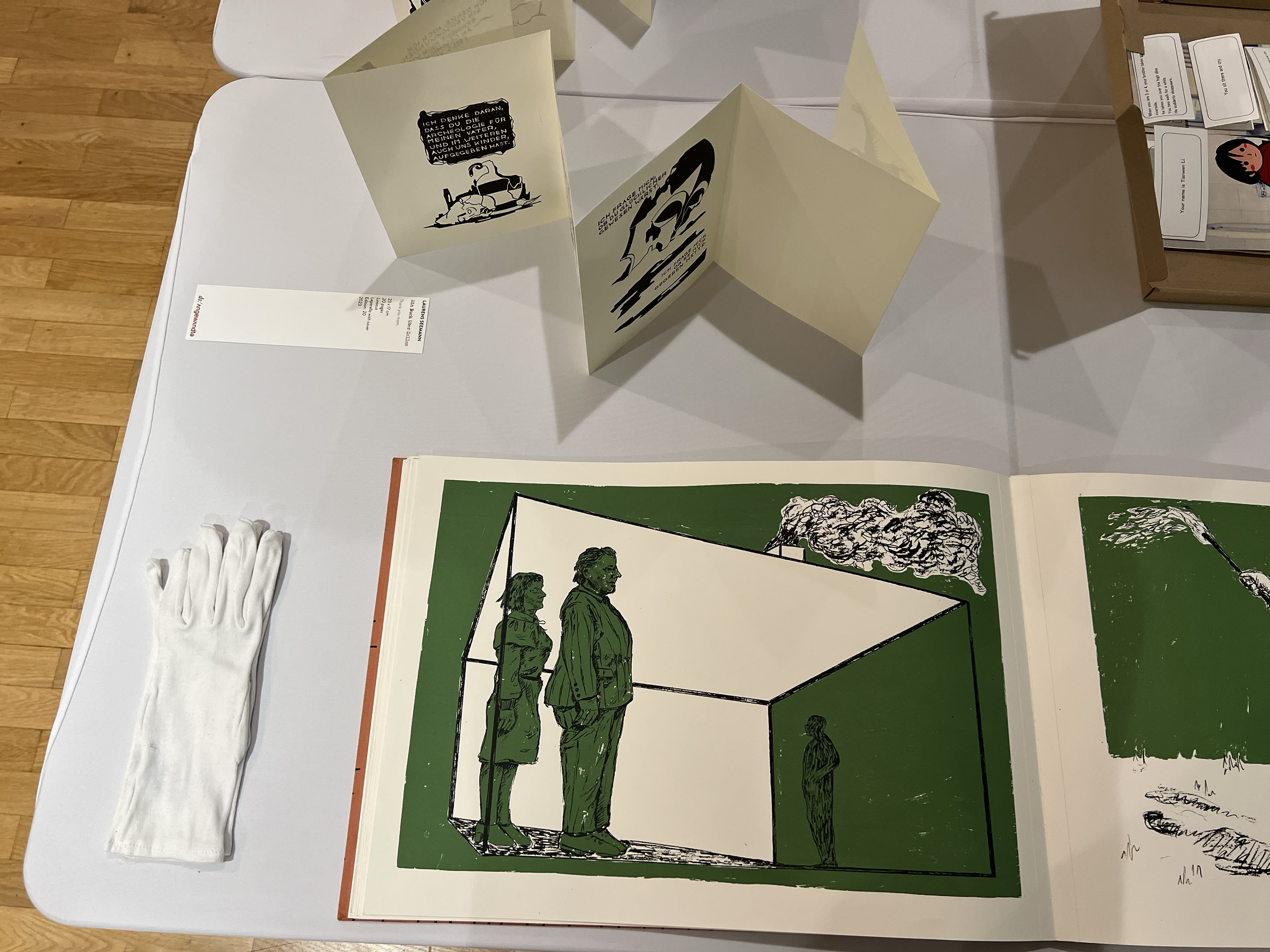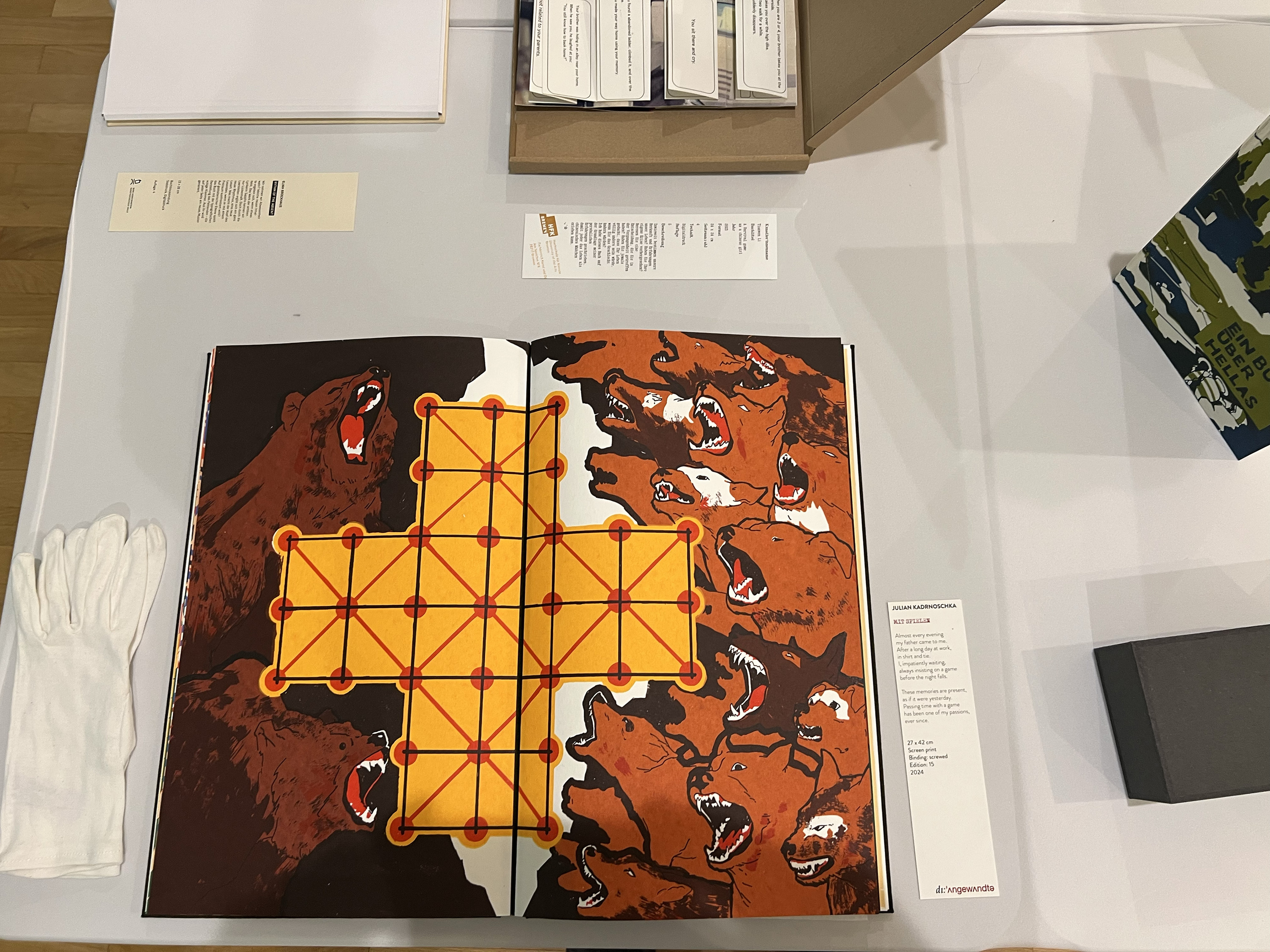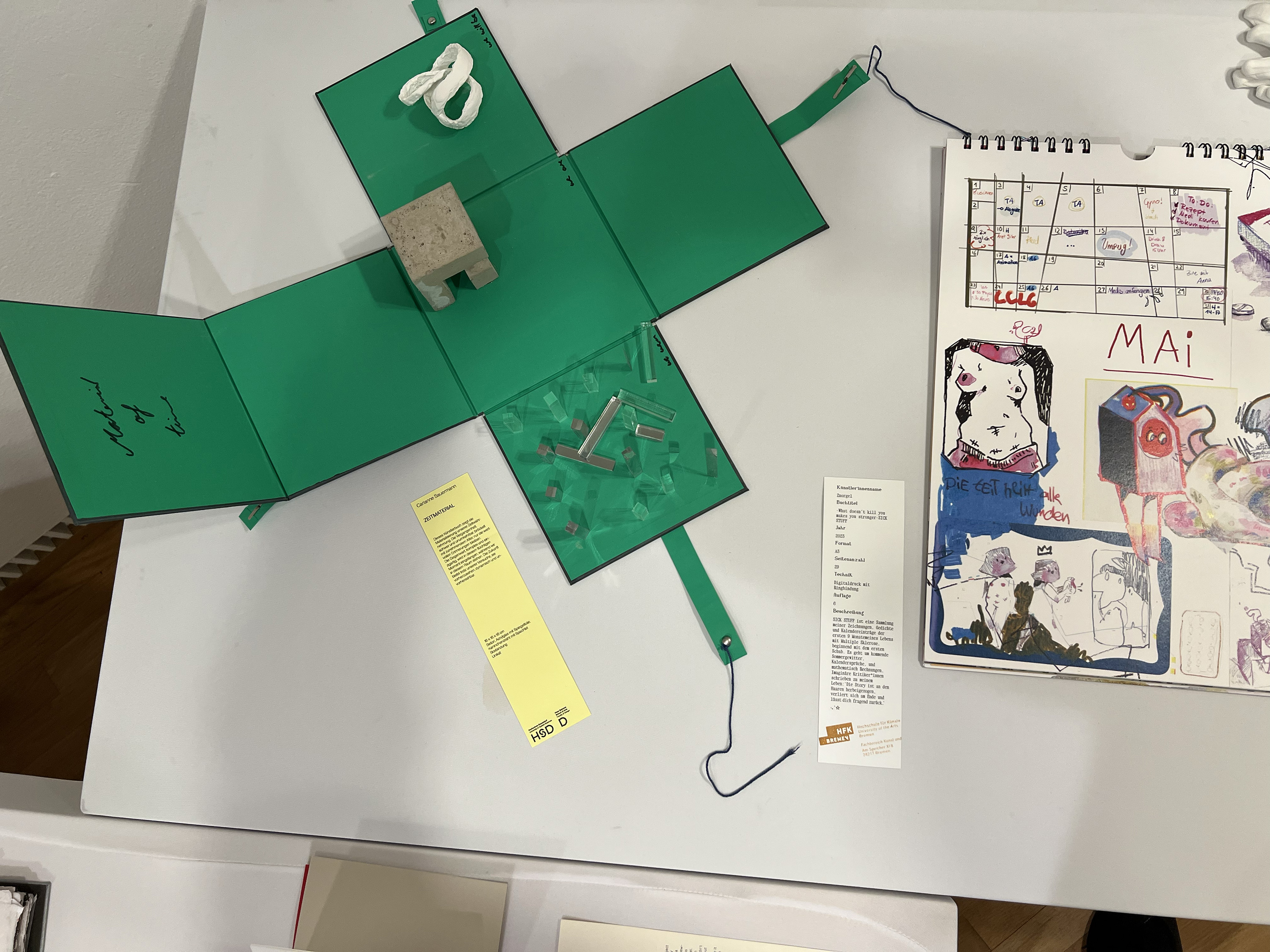 Es wurden 120 Künstlerbücher junger Künstler*innen der Abteilung; der Hochschule für Künste Bremen; der Peter Behrens School of Arts; der Hochschule Düsseldorf; der Burg Giebichenstein Kunsthochschule Halle und der Sint Lucas School of Arts Antwerpen präsentiert.