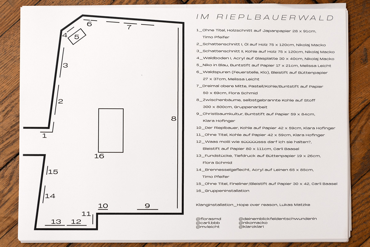 Künstler*innen: Carla Baasel, Flora Schmid, Klara Hofinger, Melissa Leicht, Nikolaj Macko und Timo Pfeifer.