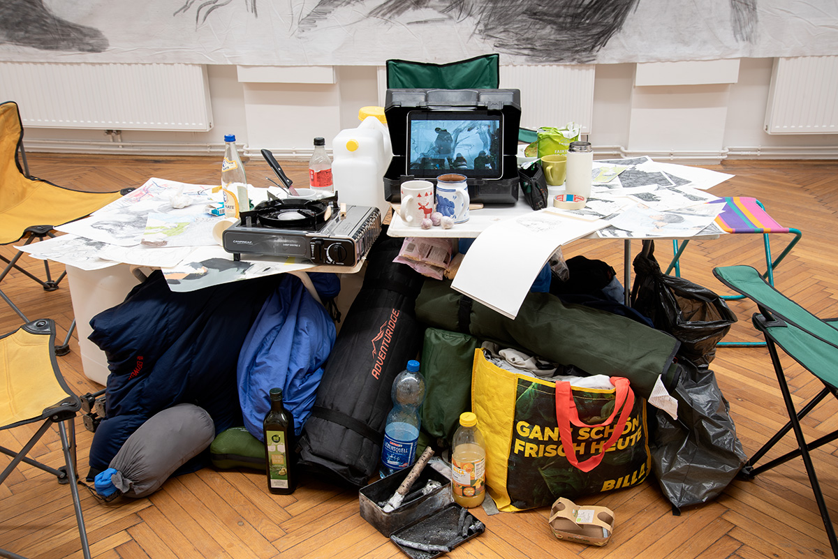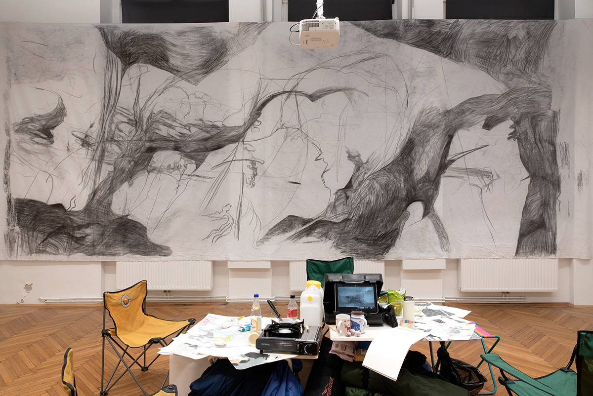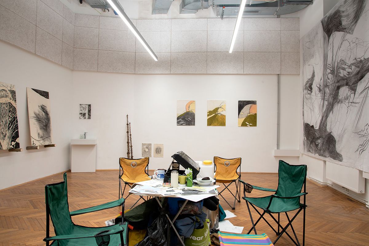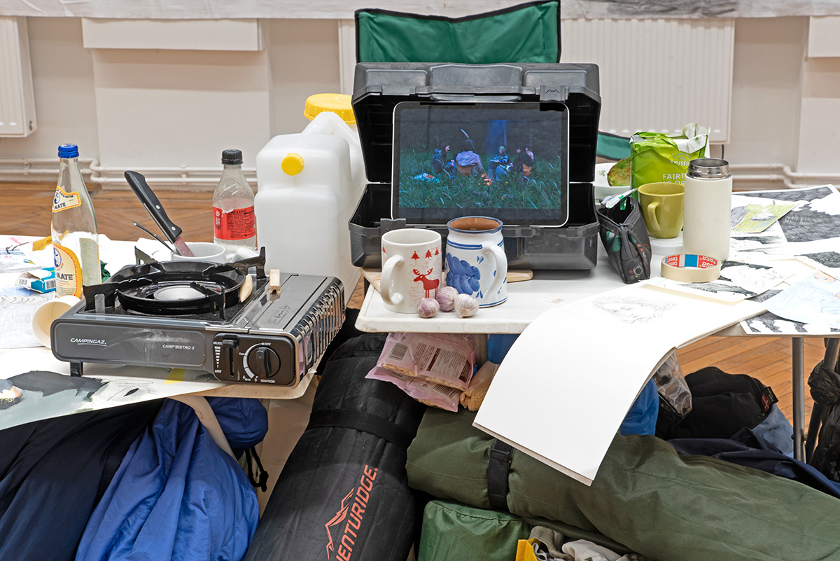 “Auf abenteuerlicher Reise in den Tiefen Oberösterreichs: Die Erstsemester-Studis der Zeichnung und Druckgrafik leben für drei Tage im Wald, trotzen der rauen Natur und lüften ungeahnte Geheimnisse. Werden sie es schaffen, Kunst zu machen? Wird es der Beginn einer Freundschaft oder einer Feindschaft? Und was hat eigentlich der Christbaum damit zu tun?”